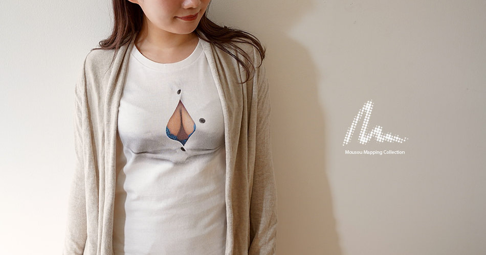 この春、 妄想マッピングTシャツに新しいラインナップが加わります。今回の新作は錯視効果により胸元がはだけて見える「妄想マッピングTシャツ/ Tight」。タイトなシャツに収まりきらない弾けんばかりのボディを簡単に纏うことができるデザインです。4月の発売予定に先立ち、3月30日より 予約受付もスタートいたします。是非今年も妄想マッピングのある暮らしをお楽しみ下さい。