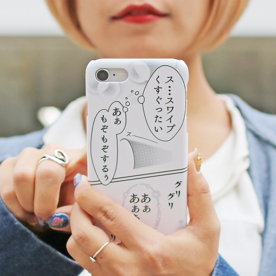 「くすぐったい」は頻繁にSNSのタイムラインをスクロールする人、「タップは優しく」はゲームなどで画面を連打しがちな方にピッタリのデザインです。このケースをつけることで、きっと向かいで見ている人にはスマホの心の声が見えてくるはずです。