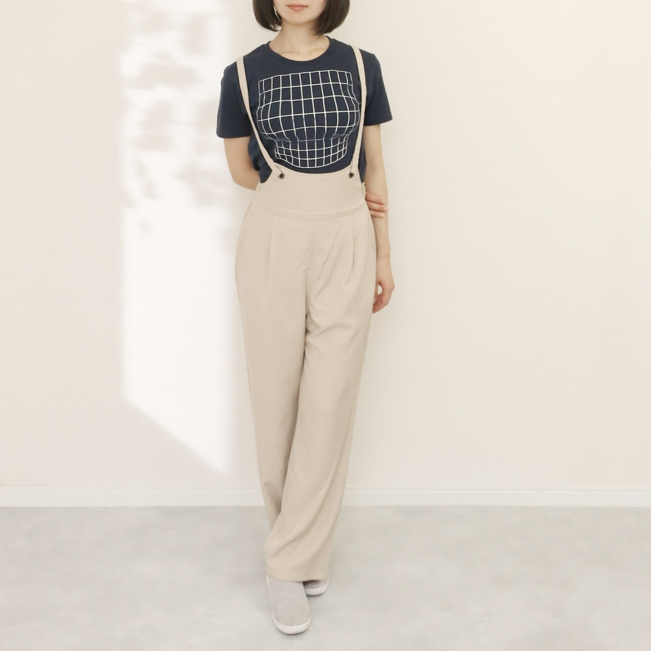 また、妄想マッピングTシャツとサロペットを組み合わせると、プリント部分がより効果的に強調されることを発見したため、コーディネートの事例として提示しております。