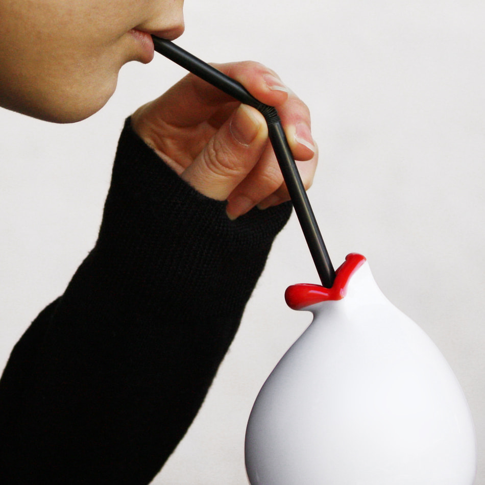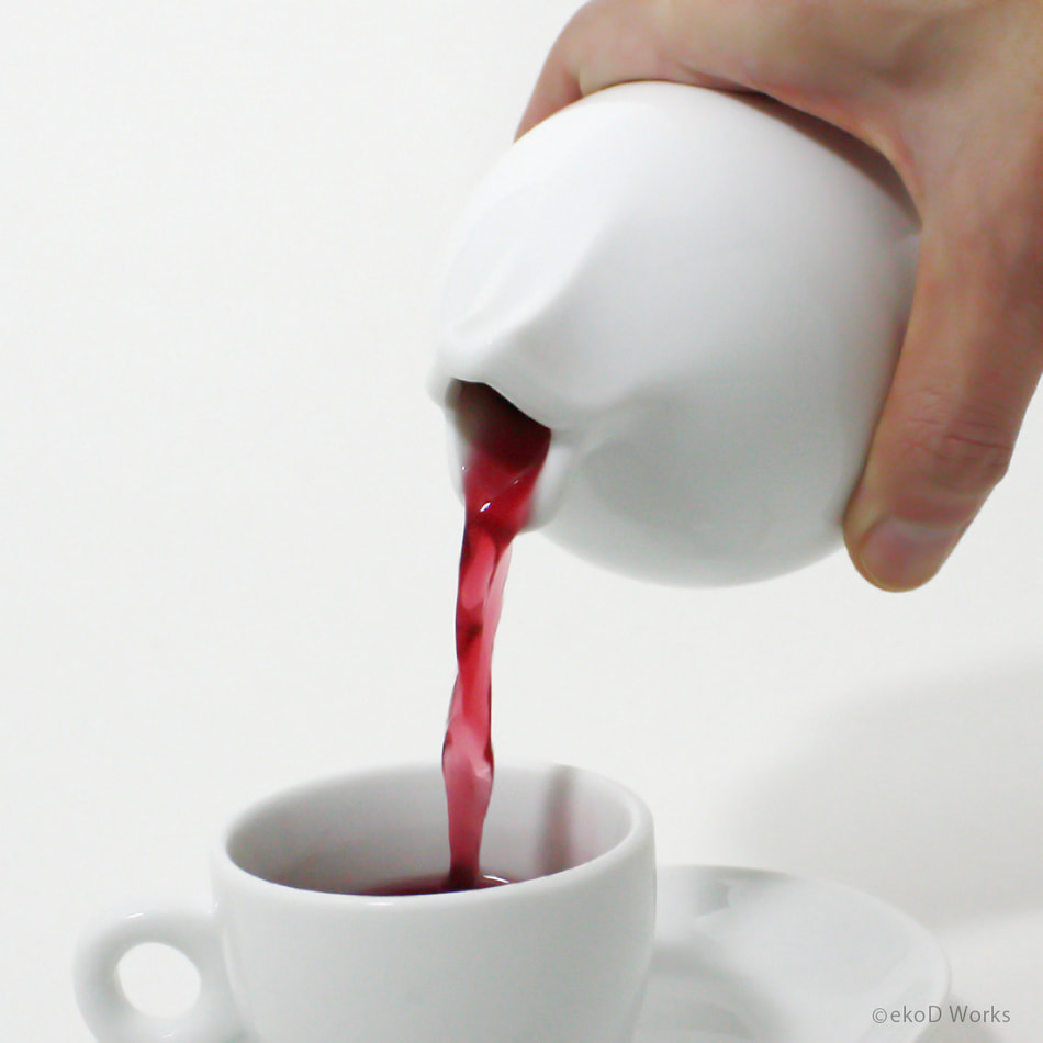 "Chu-Lip Pot mini" is a 30cc milk pitcher-sized vessel. Add milk or gum syrup to your coffee cup, add maple syrup to your pancakes, or just enjoy living with the lip-shaped vessel in your favorite situation.