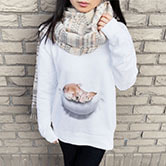 素知らぬふりをしながらも、ついついチラ見してしまうメッシュ越しのナイスバディ。人々がこっそり思い描いている妄想世界を、エコードワークス独自の妄想マッピング技術により実現。これを身に纏えばあなたも人々の注目を集めること間違いなし!?…というコンセプトの「胸元が透けて見える風」プリントTシャツです。