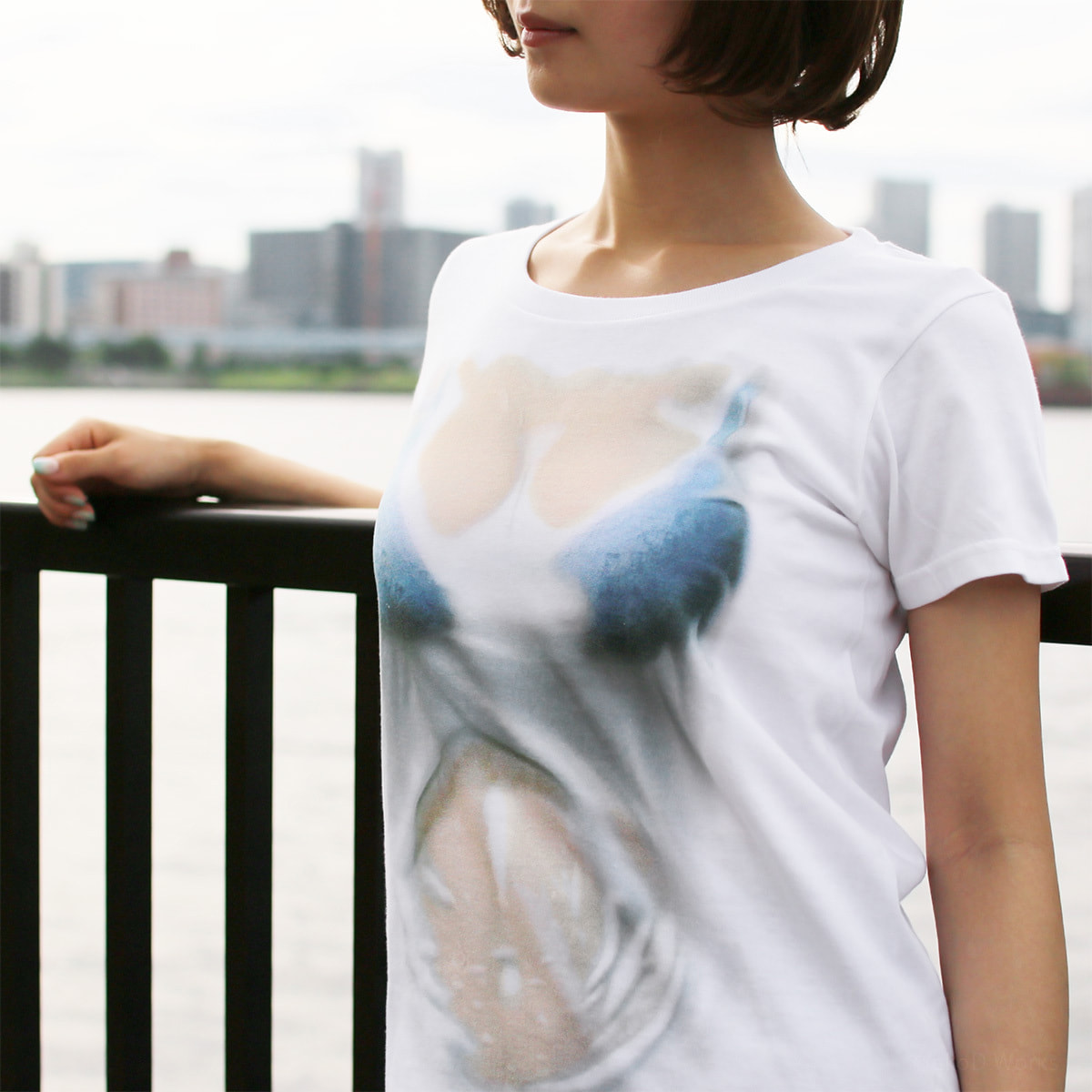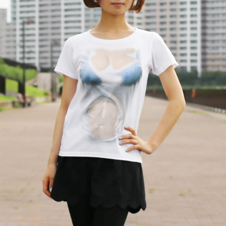 …というコンセプトの「濡れ肌が透けて見える風」プリントTシャツです。
