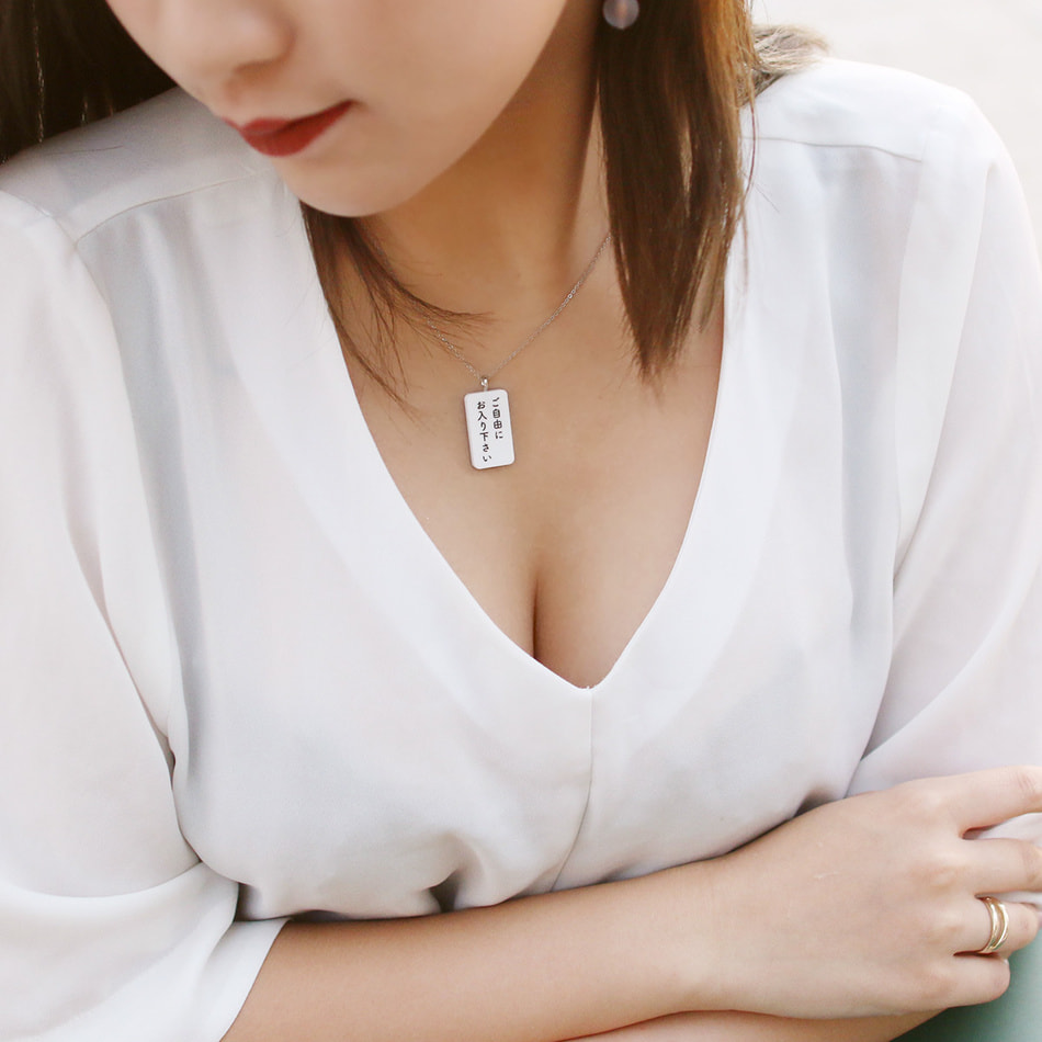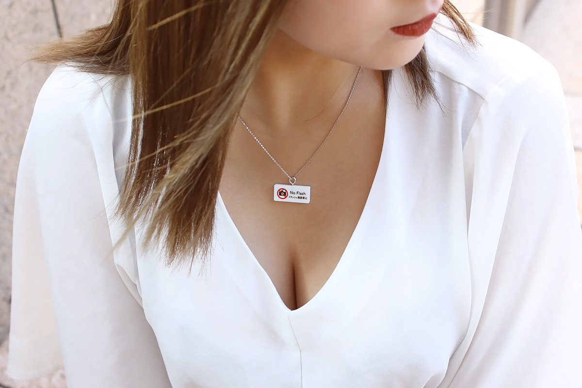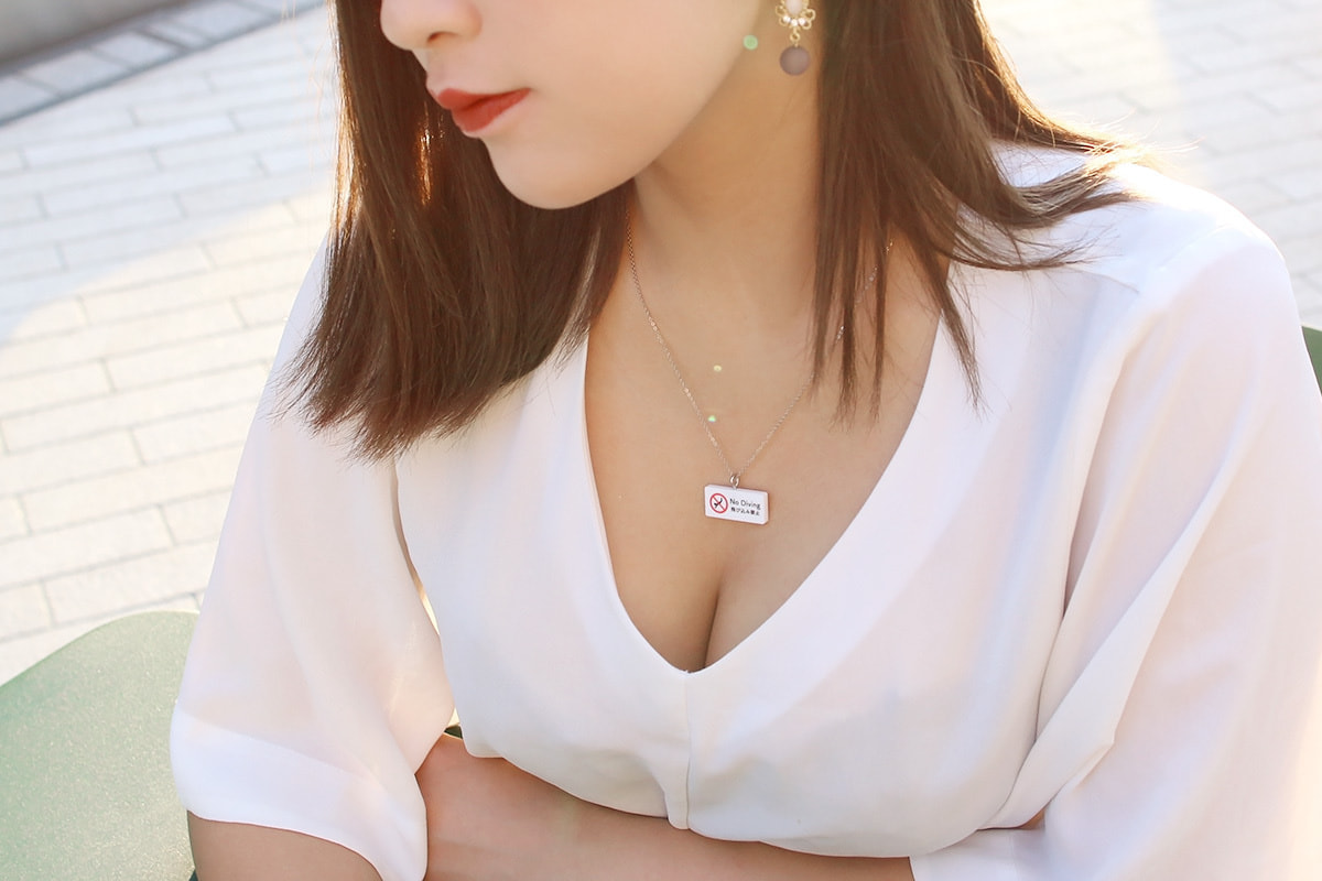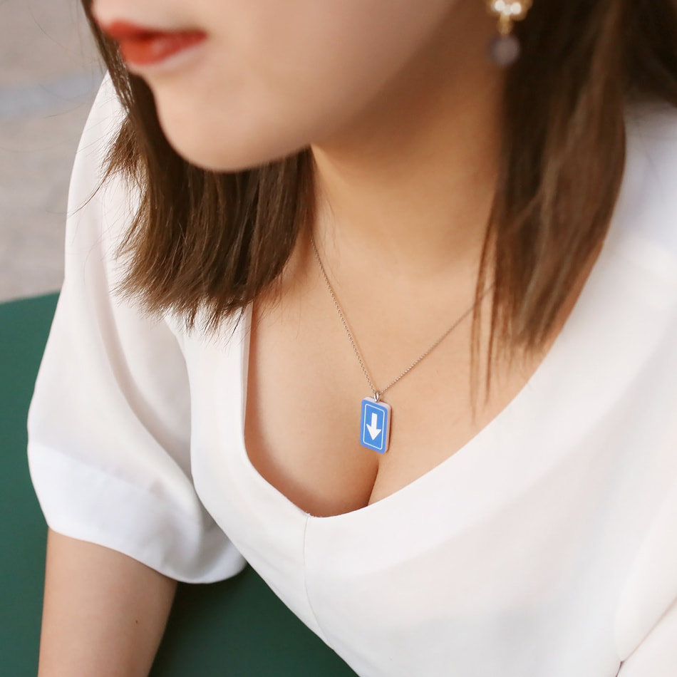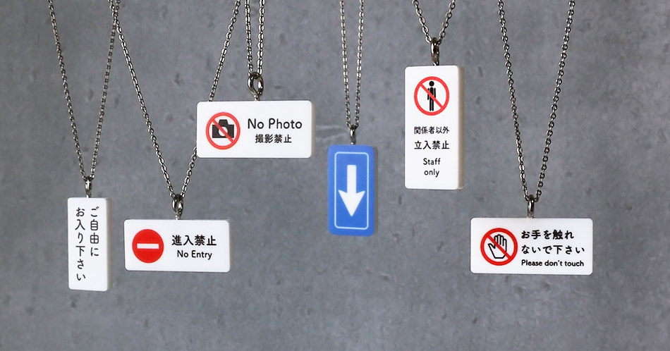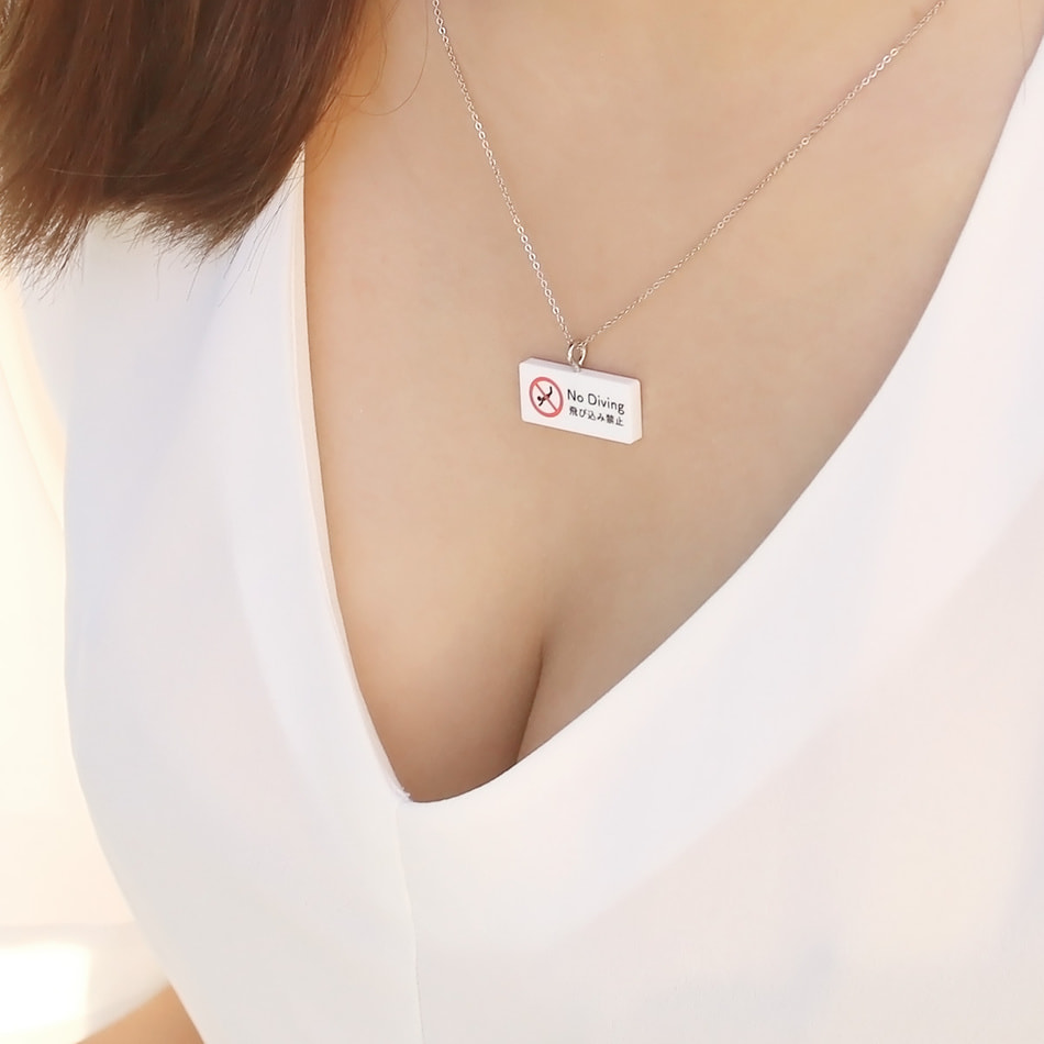 The usual signs you see on the street. When you wear it on your chest, you can include a message that is a little different from the usual. It is a sign-shaped necklace that can be worn to convey the intentions associated with your chest in a more humorous way than usual.